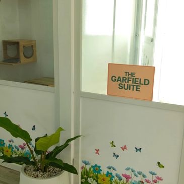 Our cat boarding Condos overlook beautifully landscaped gardens, providing your cat with a serene, natural environment and offer a peaceful outlook, allowing your cat to relax and enjoy the soothing sights and sounds of nature.