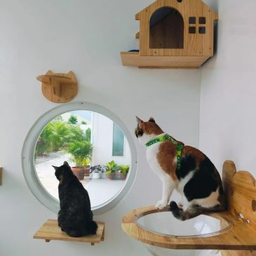 Every space is thoughtfully designed with fun and stimulating climbing areas to turn their stay into a little adventure in — a feline wonderland created just for them.